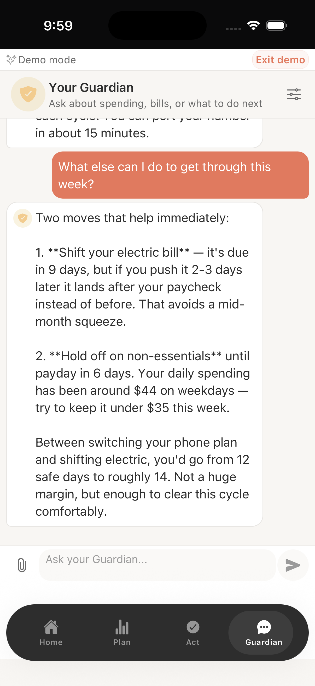 Shelter is built around these capabilities. Its AI financial guardian, called Guardian, connects to your bank data and provides conversational financial guidance based on your actual spending, income, and bill patterns. It does not manage investments or sell financial products. It focuses on the practical, day-to-day decisions that shape your financial health. You can explore what Guardian does on the features page.